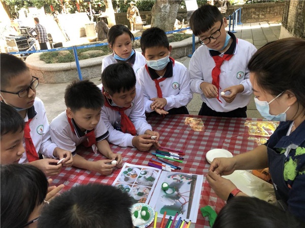 表演結(jié)束后,同學(xué)們?cè)谛血{隊(duì)員的指導(dǎo)下感受了頂獅的樂、醉龍的步伐、品嘗三鄉(xiāng)茶果,制作茶果 。整個(gè)下午其樂融融,以至于離開時(shí)同學(xué)們都有些戀戀不舍,他們既收獲了快樂,也了解了中山非物質(zhì)文化的一些知識(shí)。