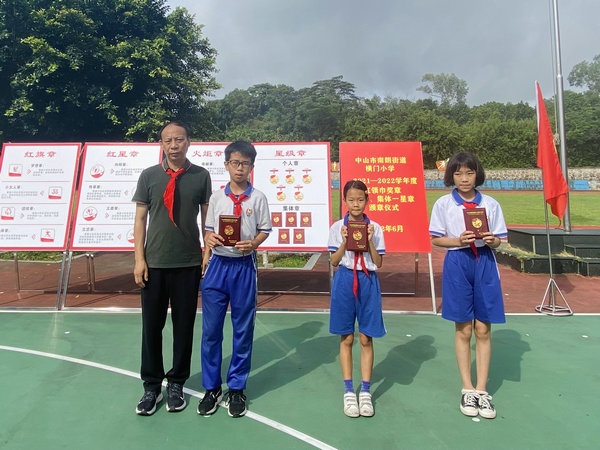 2022年6月1日上午,學校少工委在籃球場舉行了“六一”主題隊日活動。首先進行少先隊“微儀式”,在大隊輔導員鄭達明老師的帶領下,全體少先隊員面向隊旗做到“四個一”:少先隊員敬一個隊禮,唱一次隊歌,重溫一次誓詞,莊嚴呼號一次。接著舉行紅領巾爭章頒章活動。學校少工委為獲得橫門小學2021—2022學年度個人一星章的近100名隊員頒發(fā)紅領巾獎章;為獲得2021—2022學年度集體一星章的六(2)中隊、四(1)中隊和二(1)中隊頒發(fā)了獎牌。最后,學校少工委主任林校長為獲得南朗街道2021—2022學年度的優(yōu)秀少先隊員、先進中隊、優(yōu)秀少先隊輔導員、優(yōu)秀少先隊工作者進行了頒獎,表彰他們一學年以來為少先隊工作中所付出的努力。
