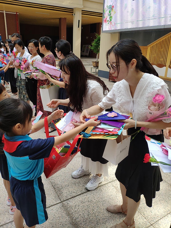 9月10日大課間,全校學(xué)生在教學(xué)樓中庭開展慰問教師活動(dòng)。同學(xué)們列隊(duì)紛紛將自制的慰問賀卡、自創(chuàng)的祝福語(yǔ)送給老師們。這一暖心活動(dòng)充分表達(dá)了同學(xué)們對(duì)老師的真情實(shí)感,對(duì)樹立尊師重教的氛圍起到了積極作用。隨后,學(xué)校還進(jìn)行了優(yōu)秀賀卡展示。