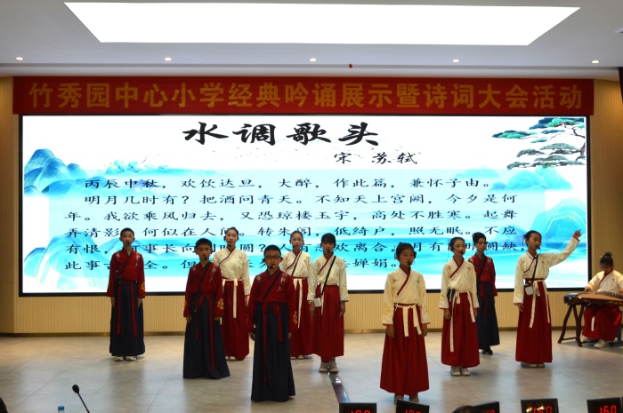 金色年華里,我們親近經(jīng)典;傳承華夏文明;燦爛時(shí)光中,我們吟誦詩文,營造書香校園。3月11日下午,竹秀園中心小學(xué)報(bào)告廳內(nèi)舉行了“詩詞浸潤人生,吟誦傳承國粹”為主題的經(jīng)典吟誦展示暨詩詞大會活動(dòng)。南區(qū)教育和體育事務(wù)中心李亞利老師、南區(qū)各學(xué)校語文骨干教師、家長代表們參加此次活動(dòng)。
