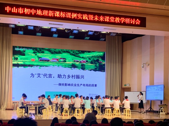 “鷺舞禾田間,人戀美食街--崖口現(xiàn)代農(nóng)業(yè)”中山紀(jì)念中學(xué)郭梅娥教師為大家?guī)硪惶靡虻刂埔税l(fā)展農(nóng)業(yè)的課例。采取公社制的崖口村就位于紀(jì)念中學(xué)旁,郭梅娥老師從實(shí)地出發(fā),拋出問題:崖口村是否適合發(fā)展農(nóng)業(yè)?主要發(fā)展哪些農(nóng)業(yè)類型?崖口村是否適合發(fā)展工業(yè)?郭梅娥老師的課堂由多組問題組成,郭梅娥老師選舉學(xué)生身邊的事例,并融入研學(xué)背景,整堂課的課程設(shè)計(jì)非常出彩,思維有力度、有深度。