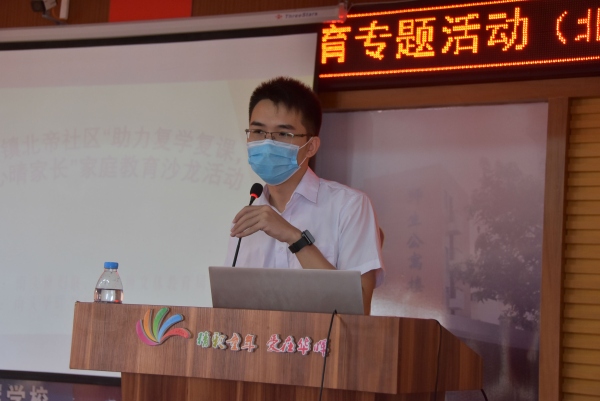 活動(dòng)開始,學(xué)校專職心理教師黃林老師作了題為《用愛守護(hù),從“心”出發(fā)》心理健康專題講座。黃老師畢業(yè)于四川警察學(xué)院應(yīng)用心理學(xué)專業(yè),國(guó)家三級(jí)心理咨詢師,專業(yè)知識(shí)扎實(shí),對(duì)青少年的心理發(fā)展和應(yīng)對(duì)策略很有心得。在講座中,黃老師圍繞關(guān)心孩子的心理變化,成為孩子最重要的支持者;提供心理支持,做好孩子返校的協(xié)助者;改善親子溝通,成為孩子成長(zhǎng)路上的陪伴者;識(shí)別孩子危機(jī)信號(hào),協(xié)同教育做孩子心理健康促進(jìn)者四個(gè)方面進(jìn)行講課。黃老師的講座深入淺出,生動(dòng)出彩,既有豐富的理論知識(shí),又結(jié)合現(xiàn)實(shí)生活列舉了大量生動(dòng)的事例,讓在場(chǎng)的每一個(gè)人都深受啟發(fā),受益匪淺。