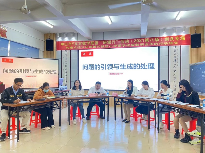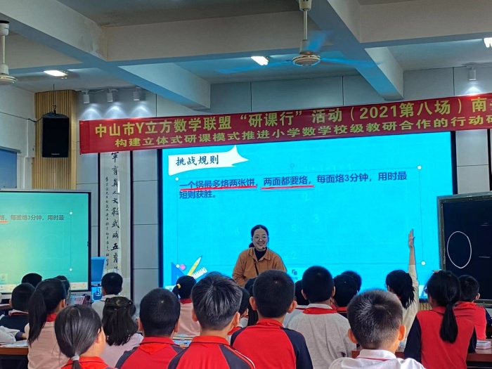 11月17日下午,中山市Y立方數(shù)學聯(lián)盟“研課行”活動(第八場)暨“構(gòu)建立體式研課模式推進小學數(shù)學校際教研合作的行動研究”活動在南頭鎮(zhèn)將軍小學順利開展?;顒佑芍猩绞衁立方數(shù)學聯(lián)盟主辦、南頭鎮(zhèn)將軍小學承辦。中山市Y立方數(shù)學聯(lián)盟代表曾鵬主任、中山市教育督導呂鑒添出席并指導,黃圃鎮(zhèn)對甫小學的巴海璇老師以及三鄉(xiāng)鎮(zhèn)大布小學的劉坤老師作課例展示。在數(shù)學科組長梁旭鋒的帶領(lǐng)以及學校各方面工作的支持下,將軍小學圓滿地承辦了本次校際教研活動。