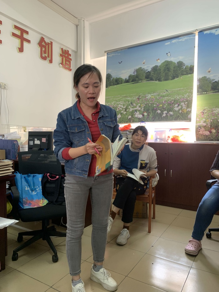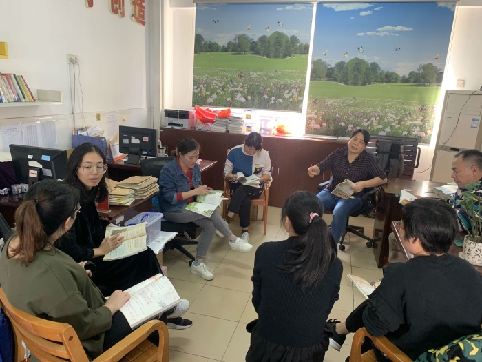 在會(huì)議上,中年級(jí)備課組長(zhǎng)何秀英老師首先向大家明確了本次教研的主題是“聚焦單元語(yǔ)文要素,精準(zhǔn)確定教學(xué)目標(biāo)”,要求大家緊緊圍繞這個(gè)研討主題開(kāi)展集體備課活動(dòng)。何老師指出,集體備課使教師們能資源共享,充分發(fā)揮“合作、探究、創(chuàng)新”的團(tuán)隊(duì)精神,能快速、有效地確定較高質(zhì)量的教學(xué)方案,有利于教師的專業(yè)成長(zhǎng)。接著,經(jīng)過(guò)團(tuán)隊(duì)的商量,確定選出王珊珊老師在下一階段為大家呈現(xiàn)四年級(jí)閱讀課例《紀(jì)昌學(xué)射》,馬桂芬老師為大家呈現(xiàn)三年級(jí)閱讀課例《金色的草地》。為了把最好的課堂展現(xiàn)出來(lái),三、四年級(jí)全體語(yǔ)文教師立馬分成兩個(gè)小組投入到集體備課環(huán)節(jié)。在集體備課中,教師們聚焦單元語(yǔ)文要素,深入鉆研教材教法。首先準(zhǔn)確把握整個(gè)單元教材的編排意圖,接著分析單元里幾篇課文之間的關(guān)聯(lián),然后確定所選課例的具體教學(xué)目標(biāo),討論詳細(xì)的教學(xué)流程。大家各抒己見(jiàn),在研討中不斷碰撞出思維的火花。