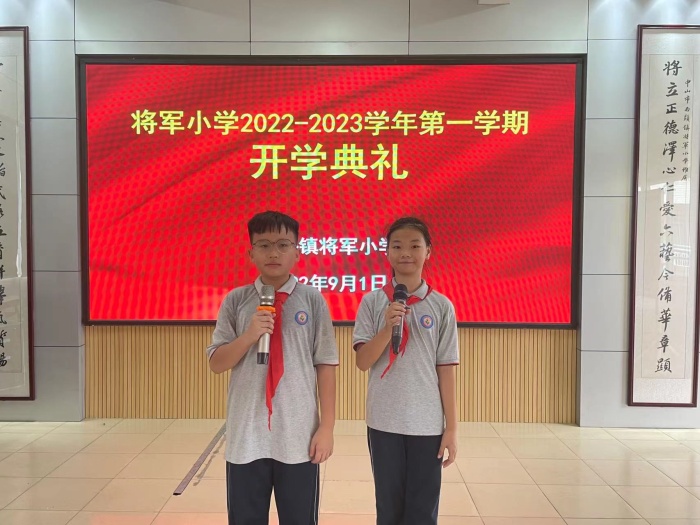 最后,胡映芬校長為全校師生送上新學期的祝福,歡迎大家重回可愛的校園,并向加入將軍小學的教師和一年級新同學表示熱烈歡迎。胡校長從“態(tài)度決定高度”“成長比成績更重要”等方面向全體師生提出新學期的希望,號召全體師生一起攜手,為了偉大祖國明天的繁榮昌盛,為了將軍小學更好的未來,努力學習,努力拼搏!
