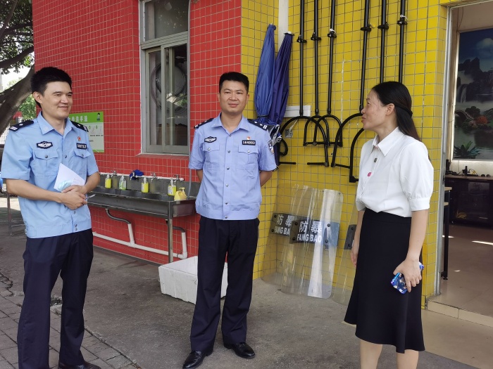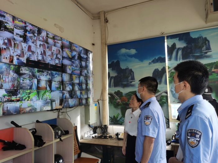 在該校校長(zhǎng)嚴(yán)玲珍的陪同下,梁局長(zhǎng)一行先是實(shí)地察看了校園環(huán)境,從學(xué)校的安保工作落實(shí)情況、校園安全管理制度建設(shè)、消防設(shè)施配備等方面進(jìn)行檢查,并重點(diǎn)對(duì)學(xué)校的專(zhuān)職保安員配備、校門(mén)口的智慧安保系統(tǒng)使用、視頻監(jiān)控設(shè)置、安防裝備配備使用、校園周邊環(huán)境等情況進(jìn)行逐條逐項(xiàng)檢查。