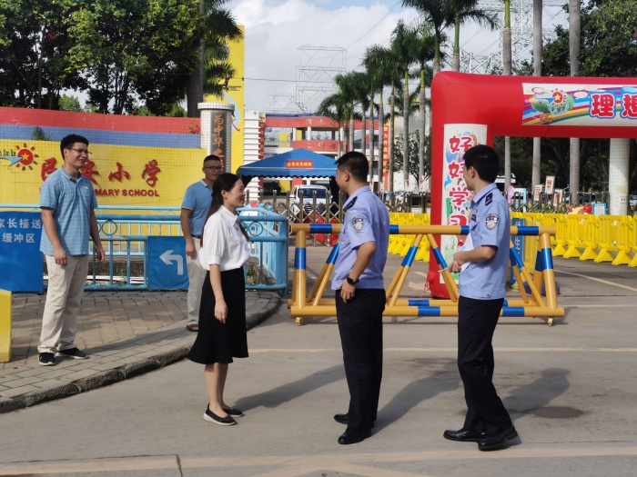 為營(yíng)造良好返校氛圍,筑牢校園安保屏障,全力保障師生平安返校。2021年9月2日上午,南頭鎮(zhèn)黨委委員、公安分局局長(zhǎng)梁建國(guó)一行到南頭鎮(zhèn)民安小學(xué)調(diào)研秋季學(xué)期開(kāi)學(xué)各項(xiàng)工作的落實(shí)情況,并實(shí)地視察校園環(huán)境。
