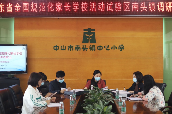 為深入貫徹落實(shí)習(xí)近平總書記關(guān)于注重家庭家教家風(fēng)建設(shè)論述精神,不斷鞏固、提升“全國(guó)規(guī)范化家長(zhǎng)學(xué)?;顒?dòng)實(shí)驗(yàn)區(qū)”家長(zhǎng)學(xué)校辦學(xué)成果,4月3日上午,南頭鎮(zhèn)教育和體育事務(wù)中心德育專干郭淑娟老師一行人到南頭鎮(zhèn)中心小學(xué)開展調(diào)研工作,學(xué)校吳婉韻副校長(zhǎng)、吳婷環(huán)主任等參加了會(huì)議。