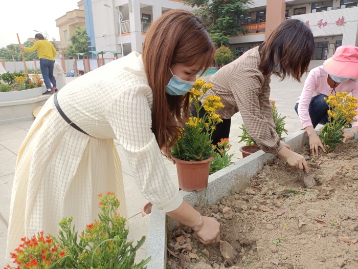 為了讓孩子們在充滿花香的校園里快樂地學習與生活,捐贈儀式后,全體老師及部分學生把在崔煥英校長的帶領下開啟了種花之旅。活動現(xiàn)場,全體師生一起干勁十足,有的負責挖坑,有的負責播撒花種,活動井然有序,盡管她們臉上灑滿汗水、褲腿上沾滿泥土,但每個人臉上都掛著笑容,完全沉浸在美化環(huán)境帶來的愉悅之中。經(jīng)過近2小時辛苦勞作,老師和同學們精心規(guī)劃設計,在不同的區(qū)域播種了不同的花種,為學校營造著美麗的風景。