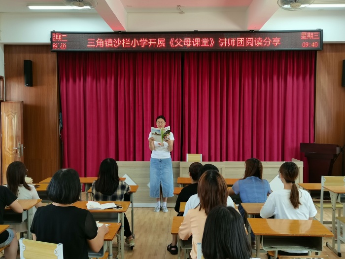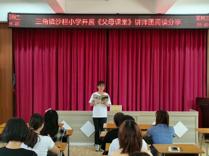 家長學校是提升家長家庭教育水平的重要平臺,為了提升班主任進行班級家長教育的能力,幫助家長構建和諧親子關系,9月16日上午,三角鎮(zhèn)沙欄小學開展了“全國規(guī)范化家長學校試驗區(qū)”工作會議和講師團閱讀分享活動,沙欄小學校崔校長、德育處主任吳麗瓊和學校全體班主任參加了本次活動。