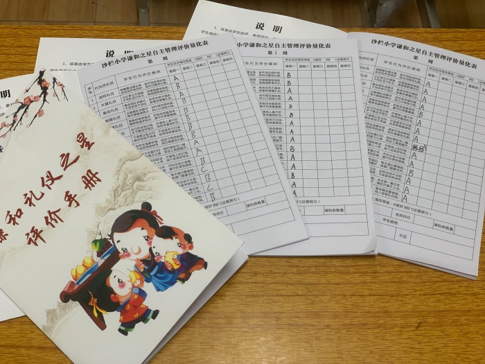 當(dāng)天上午,各中隊(duì)在中隊(duì)輔導(dǎo)員的指導(dǎo)下召開(kāi)了學(xué)習(xí)《“謙和禮儀之星”評(píng)價(jià)手冊(cè)》主題班隊(duì)會(huì),各班主任組織學(xué)生認(rèn)真細(xì)致學(xué)習(xí)手冊(cè)當(dāng)中包含上課禮儀、升旗禮儀、集會(huì)禮儀等15種禮儀的具體要求,崔校長(zhǎng)也親自到每個(gè)班跟學(xué)生一起學(xué)習(xí)“謙和禮儀細(xì)則”。對(duì)照各項(xiàng)禮儀的細(xì)則學(xué)生每天自評(píng),家長(zhǎng)、老師每周評(píng)一次,一周內(nèi)得到三個(gè)“A.很好”就能得到一張“謙和禮儀券”,每四周統(tǒng)計(jì)一次,獲得4張謙和禮儀券的同學(xué)將得到參與學(xué)校抽獎(jiǎng)的機(jī)會(huì)。