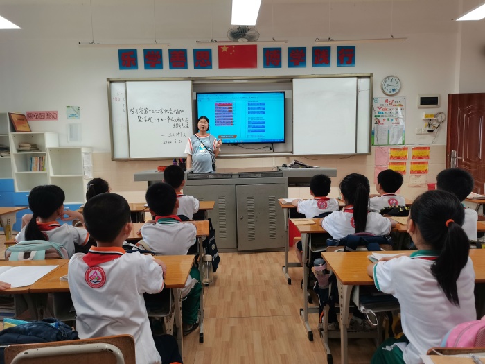 此外,班主任還利用“學(xué)習(xí)強(qiáng)國”APP播放了“廣東省第十三次黨代會(huì)報(bào)告激發(fā)中山各界創(chuàng)新發(fā)展動(dòng)力”的視頻:視頻中講到了中山的科技在高速發(fā)展,本土科技創(chuàng)新在不斷提高。實(shí)業(yè)家繼續(xù)發(fā)揚(yáng)敢闖敢做、埋頭苦干的精神,讓學(xué)生們心中埋下了熱愛祖國,爭做新時(shí)代好隊(duì)員的種子。