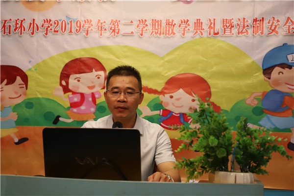 為引導(dǎo)學(xué)生度過(guò)一個(gè)健康、愉快的假期,2020年7月17日上午,三鄉(xiāng)鎮(zhèn)白石環(huán)小學(xué)舉行2019學(xué)年第二學(xué)期散學(xué)典禮暨法制安全教育。全體師生和法制副校長(zhǎng)一起參加該次散學(xué)禮,大會(huì)總結(jié)了一學(xué)期的學(xué)習(xí)和工作,以及如何度過(guò)一個(gè)平安、快樂(lè)的暑假。