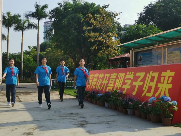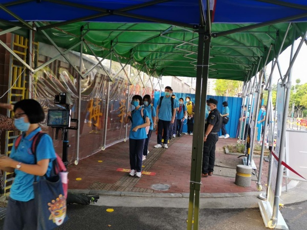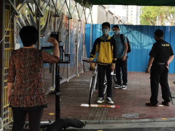 5月11日,三鄉(xiāng)中學(xué)迎來了全體師生返校復(fù)學(xué)的日子。初夏的清晨,空氣清新,微風(fēng)陣陣。值班行政、值班教師、測溫工作人員、醫(yī)護(hù)人員、家長義工等早早等候在校門口,喜迎三中學(xué)子返校。