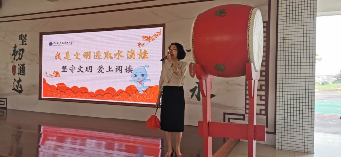 本次升旗儀式活動分為三個環(huán)節(jié),第一環(huán)節(jié)是由肖志紅校長講話,發(fā)言主題是《我是文明進(jìn)取水滴娃》,肖校長以一個關(guān)于麻雀、大雁和雄鷹的故事開始了本次國旗下的講話,她激勵學(xué)生要以“文明”之名堅持讀書,以“文明”之名展示風(fēng)采,并提出了文明課堂、文明用餐、文明個人這三點(diǎn)倡議,希望全體學(xué)生以實(shí)際的行動,從小事做起,從現(xiàn)在做起,堅持讀書,堅守文明,開啟更美新學(xué)期。