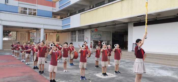 上午8:30,運(yùn)動員進(jìn)行曲響起,各班有序列隊按照指定路線到達(dá)學(xué)校篤行堂參加莊重的升旗儀式,鼓號隊員精神抖擻,鼓聲整齊劃一,旗手捧著鮮艷的國旗正步走到旗桿下,隨著國歌的響起緩緩升起了國旗,隊員們肅立敬禮!