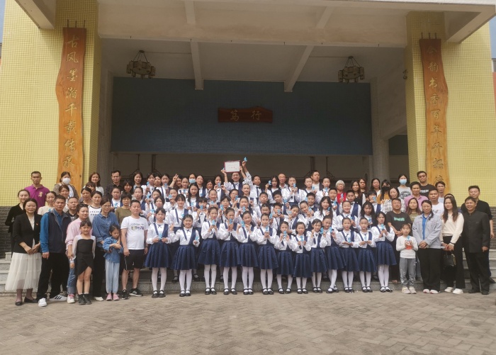 龍朝暉校長在學校篤行堂前發(fā)表了熱情洋溢的講話。高度贊揚了合唱隊指導老師李海峰老師、張欣欣老師以及整個音樂科組。為同學們的刻苦訓練及賽場的精彩表現(xiàn)點贊,親手將精美的“水滴娃”紀念品送給同學們。還真誠表揚了合唱隊的家長們支持孩子學習才藝,全面發(fā)展孩子綜合素養(yǎng)的實際行動。龍校長鼓勵田園之歌合唱團再接再厲,繼續(xù)積極參加各級各類藝術比賽,以比賽為契機,充分展示出新圩水滴少年的風采,努力邁上新臺階,取得新突破!