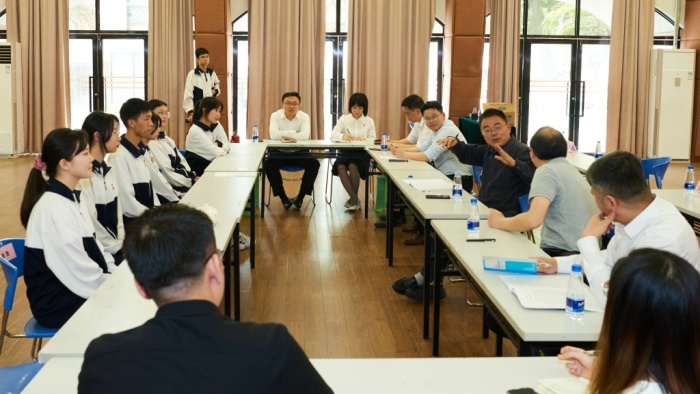 4月11日,中山市學(xué)校特色巡禮暨“接力工程”入校診斷活動中山市沙溪理工學(xué)校專場如約而至。本次活動由中山市教育和體育局主辦,在全市各所直屬學(xué)校設(shè)專場,旨在充分發(fā)揮市內(nèi)優(yōu)秀學(xué)校(幼兒園)的示范作用,總結(jié)和推廣優(yōu)秀校(園)長先進管理經(jīng)驗,培養(yǎng)市內(nèi)教育管理后備人才。在市教師發(fā)展中心副主任徐瑩、副主任周勇、教育管理培訓(xùn)部部長李泳綺等人帶領(lǐng)下,江蘇省中小學(xué)教師培訓(xùn)學(xué)會常務(wù)副會長兼秘書長、教授、特級教師嚴(yán)華銀,江蘇省特級教師、正高級教師戎年中,南京市秦淮區(qū)教師發(fā)展中心教科研中心主任杭巧等專家蒞臨學(xué)校指導(dǎo),市直屬中職學(xué)校后備校長及后備副校長入庫人員參加。