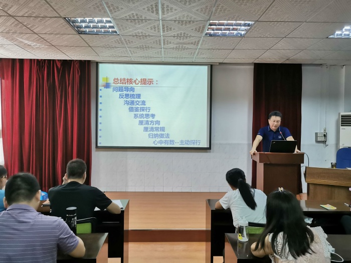吳偉標(biāo)校長(zhǎng)在活動(dòng)中首先明確了此次培訓(xùn)的目的和意義,對(duì)教師們寄予了衷心祝愿和殷切期望,希望教師們學(xué)會(huì)系統(tǒng)思考,做到胸懷大局、守土有責(zé),互補(bǔ)互助,促進(jìn)自我完善,促進(jìn)學(xué)校和教師個(gè)體內(nèi)涵發(fā)展。