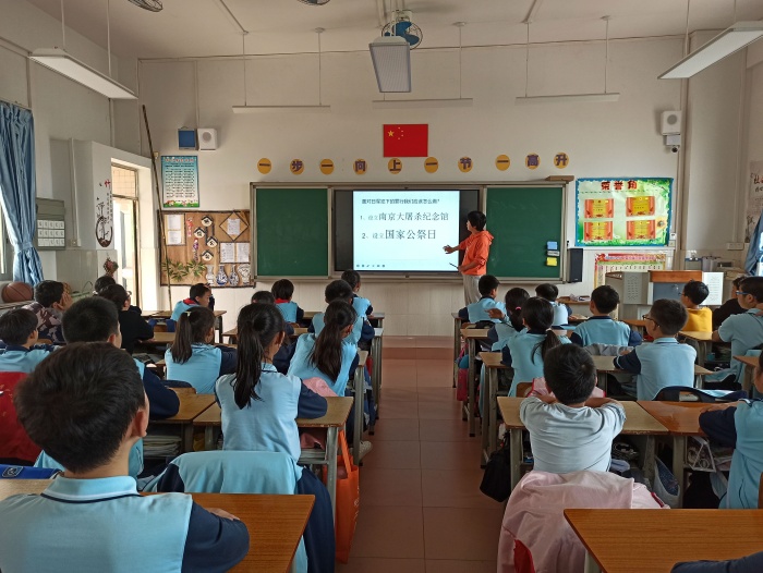 下午,各班召開了“勿忘國(guó)恥,振興中華”主題班會(huì)。班會(huì)課上,班主任帶領(lǐng)隊(duì)員們深入了解南京大屠殺事件的歷史背景。通過觀看歷史影像、紀(jì)錄片,隊(duì)員們切身感受到了在中華民族軀體上無法消弭的傷疤,感受到了侵略戰(zhàn)爭(zhēng)給中國(guó)人民和世界人民造成的深重災(zāi)難。班主任引導(dǎo)學(xué)生要銘記歷史、緬懷先烈,明白“少年智則國(guó)智,少年富則國(guó)富,少年強(qiáng)則國(guó)強(qiáng)”的道理。