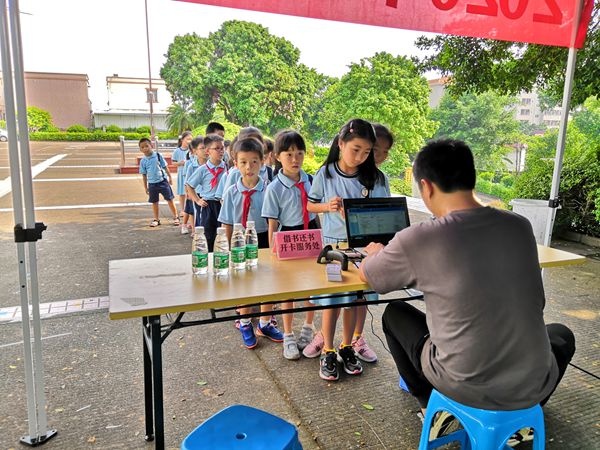 這是在做什么?原來(lái)是沙溪鎮(zhèn)中心小學(xué)為增強(qiáng)學(xué)生的閱讀興趣,增加閱讀量,提高閱讀技能,便結(jié)合中山紀(jì)念圖書(shū)館的流動(dòng)圖書(shū)服務(wù),開(kāi)展“流動(dòng)圖書(shū)進(jìn)校園”活動(dòng),以讀書(shū)活動(dòng)為契機(jī),引領(lǐng)和推動(dòng)學(xué)校讀書(shū)活動(dòng)的開(kāi)展,形成讀書(shū)氛圍,推動(dòng)書(shū)香校園建設(shè)。本次活動(dòng)在學(xué)校副校長(zhǎng)劉美霞和語(yǔ)文科組長(zhǎng)劉綺云老師的安排指揮下分年級(jí)有序地開(kāi)展?;顒?dòng)現(xiàn)場(chǎng)工作人員在為學(xué)生介紹圖書(shū)借閱流程的同時(shí),耐心講解流動(dòng)圖書(shū)服務(wù),并現(xiàn)場(chǎng)為有需要的學(xué)生辦理讀者證。對(duì)這一嶄新的閱讀形式,學(xué)生們興致高昂,迫不及待地選擇自己喜歡的圖書(shū),津津有味地讀起來(lái)?;顒?dòng)結(jié)束后,學(xué)生們依依不舍地把書(shū)放回原位置,意猶未盡。已辦理讀者證的同學(xué)則興高采烈地辦理好借閱手續(xù),帶著心愛(ài)的圖書(shū)回家繼續(xù)遨游書(shū)海。