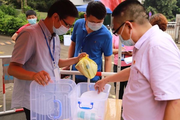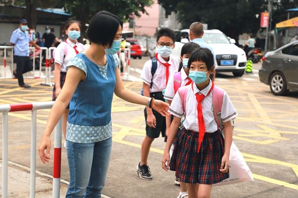 早上七點,校領導和值日老師們早已在校園的各個崗位嚴陣以待,等候同學們的到來,雖然下著蒙蒙的細雨,依然阻擋不了師生們復學的熱情。同學們都戴著口罩自覺間隔1米以上,排隊檢測體溫,通過人臉識別進入校園。家長們?yōu)榱诵iT口交通順暢,也自覺配合學校的各項規(guī)定,一切秩序井然。