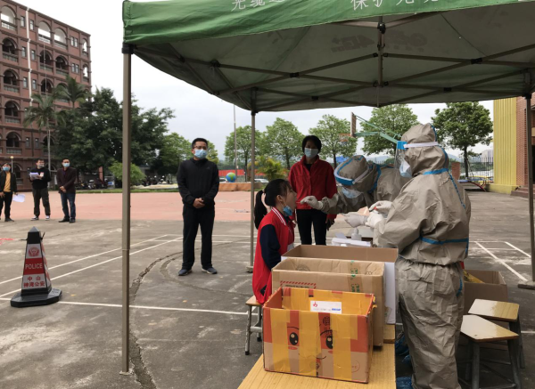 8:30,在神灣醫(yī)院陸志良主任的帶領(lǐng)下的工作人員,進(jìn)入校園布置安排了用于核酸檢測的設(shè)備和醫(yī)療物品,隨即開展對學(xué)生進(jìn)行核酸檢測工作。