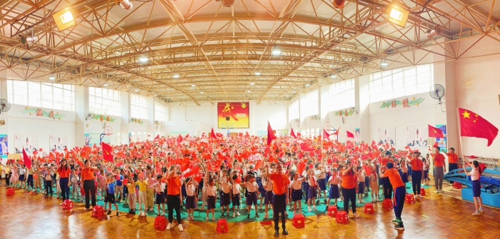 為慶祝中華人民共和國(guó)成立72周年,深入貫徹落實(shí)習(xí)近平總書記的系列重要講話精神,加強(qiáng)社會(huì)主義核心價(jià)值觀教育,激發(fā)老師和學(xué)生們的愛(ài)國(guó)主義情感,增進(jìn)學(xué)生的集體榮譽(yù)感,9月30日上午,小欖鎮(zhèn)東方小學(xué)全體師生懷著激動(dòng)和自豪的心情,齊聚在體育館,共同慶祝即將到來(lái)的祖國(guó)的72周年華誕。