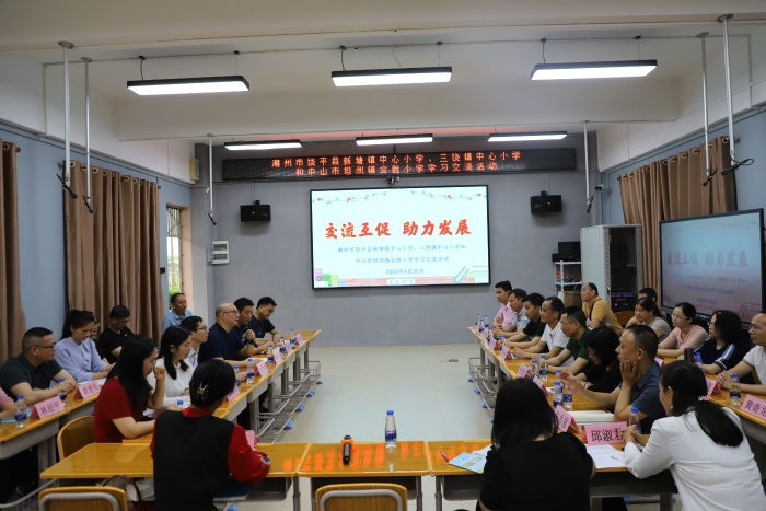 為貫徹落實省教育廳關于“全口徑全方位融入式幫扶工作”文件精神,落實《中山市教體系統(tǒng)2022年對口支援幫扶工作實施方案》要求,中山市坦洲鎮(zhèn)合勝小學與潮州市饒平縣新塘鎮(zhèn)中心小學簽訂了幫扶協(xié)議,成為“結對子”學校。4月20日下午,饒平縣新塘鎮(zhèn)中心小學、三饒鎮(zhèn)中心小學22位行政、教師到坦洲鎮(zhèn)合勝小學學習交流。坦洲鎮(zhèn)教育和體育事務中心鄭訓彬主任、阮班俊副主任、何平原老師參加活動。坦洲鎮(zhèn)合勝小學張志略校長率領行政班子成員熱情接待了交流團隊。