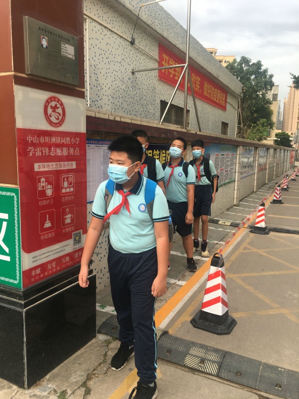 5月18日,夏風和煦,陽光明媚。坦洲同勝小學四至六年級的學生結束了“超長的寒假”,迎來了返校復學的第一天。