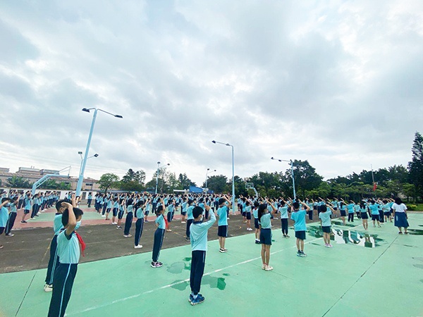 接著,由六(1)班的吳浩瑩和葉國慶同學進行國旗下講話。他們表達了對抗疫英雄的敬意,總結了線上學習期間的收獲,訴說了對重返校園的喜悅,并引導同學們在接下來的時間里,勞逸結合,踏實認真地學習,健康快樂地成長。