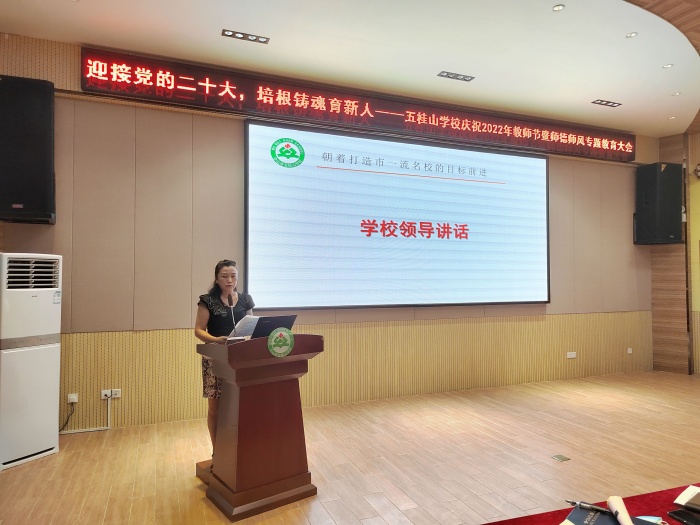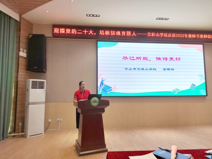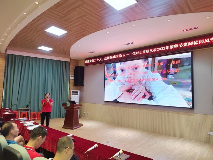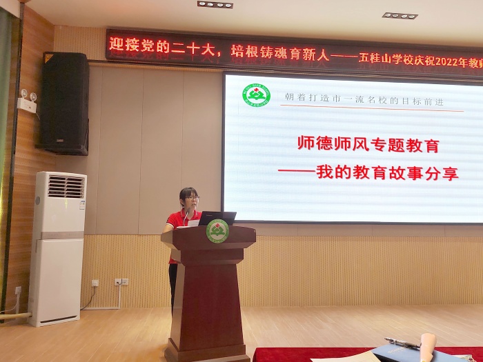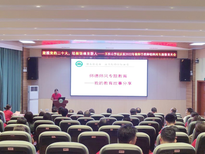 在漾著秋韻的日子里,我們欣喜地迎來了屬于我們自己的節(jié)日!今年9月10日是我國第38個教師節(jié),今年教師節(jié)的主題是:迎接黨的二十大,培根鑄魂育新人。9月9日下午,五桂山學(xué)校全體教師歡聚綜合報告廳,舉行教師節(jié)慶?;顒郁邘煹聨燂L(fēng)專題教育大會。