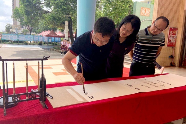 據(jù)悉,小欖豐華學(xué)校的毛筆書法教育開展得比較早。早在2009年該校以校園書法社團(tuán)活動(dòng)的形式推進(jìn)校園書法教育。后來,該校又采取聘請(qǐng)專業(yè)老師、外聘專家、培養(yǎng)一專多能的教師等舉措,落實(shí)“全員書法”,行政、老師、學(xué)生齊上陣,帶動(dòng)了許多家長也參與到學(xué)書法中來。小欖豐華學(xué)校的書法教育的步伐越走越堅(jiān)定,路子越走越寬,成果不斷涌現(xiàn)。師生在市鎮(zhèn)級(jí)以上的各級(jí)書法專業(yè)大賽中每年都有超過300人次的獲獎(jiǎng)。先后在北京太廟、廣東省立圖書館、中山市美術(shù)館、小欖鎮(zhèn)藝術(shù)館等場(chǎng)所,舉辦了“翰墨豐華”系列師生書法展多場(chǎng),書法教育碩果累累。今天,翰墨豐華·中山市小欖豐華學(xué)校2020屆畢業(yè)生代表書法作品展的成功舉辦,是該校書法藝術(shù)教育進(jìn)程中的一個(gè)美麗的注腳,是該校書法教育的又一個(gè)可喜的成果。