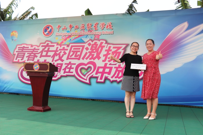 中山報(bào)業(yè)傳媒股份有限公司教育工作室總監(jiān)羅展新女士向聚星學(xué)校路海云校長(zhǎng)授牌,標(biāo)志著中山日?qǐng)?bào)《鳳凰花開》聚星學(xué)校通訊站正式成立。