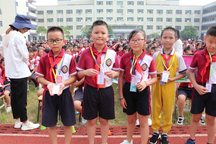通過教師舉薦、班級(jí)選拔的方式,共選拔出100名優(yōu)秀通訊員代表,路海云校長(zhǎng)與中山報(bào)業(yè)傳媒股份有限公司教育工作室總監(jiān)羅展新女士、中山日?qǐng)?bào)《鳳凰花開》校園專刊主編黃漢英一同為聚星通訊員們戴上通訊員證。