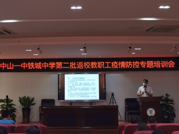 疫情防控關(guān)系到每一位師生的安全,開學(xué)工作關(guān)系到千家萬戶的生活。隨著初三年級(jí)順利返校復(fù)學(xué),中山一中鐵城中學(xué)按照省教育廳的文件精神,全體教職工團(tuán)結(jié)一心,群策群力,于5月4日下午召開了初一、初二級(jí)全體教職工疫情防控專題培訓(xùn)會(huì)議,積極落實(shí)防疫工作,精準(zhǔn)做好初一、初二順利復(fù)學(xué)返校準(zhǔn)備。