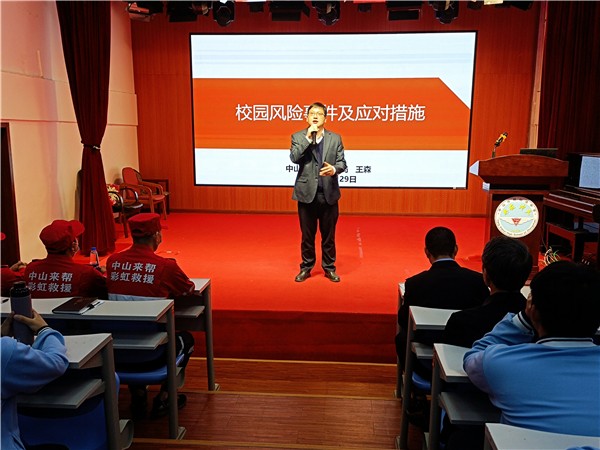3月31日下午,我校在演播室和課室舉行了以“校園風(fēng)險(xiǎn)事件及應(yīng)對(duì)措施”為主題的安全教育講座。講座由分管校園安全工作的劉莉祥副校長(zhǎng)主持,劉朝暉校長(zhǎng)及全體師生參加學(xué)習(xí)。本次講座由中山市應(yīng)急管理局審批辦副主任、中山市教體局特聘校園安全管理專(zhuān)家王森同志主講。