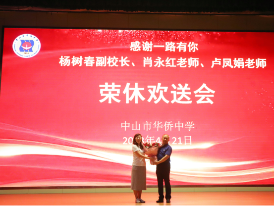伴隨著優(yōu)美的樂曲,大家一起通過大屏幕回顧了退休老師們在僑中度過的美好歲月,在輕松、愉悅的氛圍中,周光榮主席致歡送詞,對退休老師們?yōu)閮S中兢兢業(yè)業(yè)的付出表示衷心的感謝,致敬他們無私奉獻(xiàn)育桃李的精神,祝賀他們光榮退休,祝愿幾位老師退休以后,身體健康,快樂幸福。