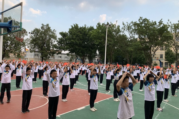接著,全校師生揮舞著手中的紅旗,齊唱《歌唱祖國》,共同歌頌偉大祖國成立71周年取得的輝煌業(yè)績和偉大成就。全校師生表演了隊形變字,隊形中“國慶71周年”六個大字,為祖國祝福,抒發(fā)了對祖國母親強烈的熱愛之情。