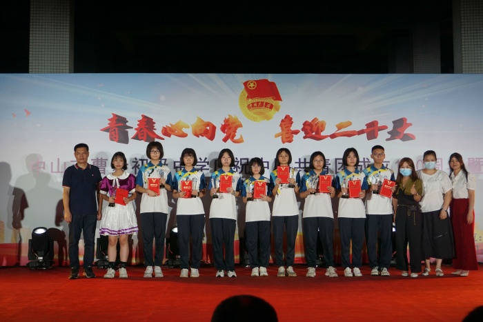 隨后分別由鎮(zhèn)團(tuán)委副書記麥家俊、曹步中學(xué)副校長吳文杰、曹步中學(xué)黨支部書記年四揚頒發(fā)“明慧之星”“明心之星”以及“明理之星”各個獎項。鐘婷珊老師、初二(3)班王芷研同學(xué)、初一(4)班陳婭楠家長陳國全先生作為代表發(fā)言。在表彰期間,還穿插著《萬疆》《明月幾時有》等節(jié)目,在激昂雄壯的旋律中,唱出了愛國愛黨的主旋律,唱出了奮進(jìn)新時代的精神動力。
