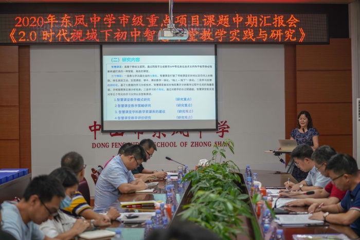 為進(jìn)一步提升課題研究質(zhì)量,切實(shí)增強(qiáng)課題研究的規(guī)范性、實(shí)效性,促進(jìn)教師科研能力的提高,7月7日,東鳳中學(xué)舉行了2020年市級(jí)重點(diǎn)項(xiàng)目課題《2.0時(shí)代視域下初中智慧課堂教學(xué)實(shí)踐與研究》中期匯報(bào)會(huì)。出席匯報(bào)會(huì)的有:中山市中小學(xué)教師信息技術(shù)應(yīng)用能力提升工程辦公室吳寒冬主任,教育部國(guó)培計(jì)劃專(zhuān)家、廣東省特級(jí)教師、市教研室信息技術(shù)教研員陳明宏老師,市教育技術(shù)中心陳志豪老師以及課題組的全體人員。