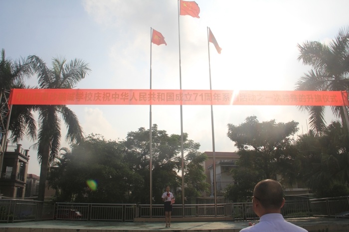 為慶祝中華人民共和國成立71周年,弘揚愛國主義精神,激發(fā)師生愛國情感、報國之志,中山市阜沙鵬誠學(xué)校于2020年9月30日上午,舉行了慶祝中華人民共和國成立71周年系列活動之一次特殊的升旗儀式。