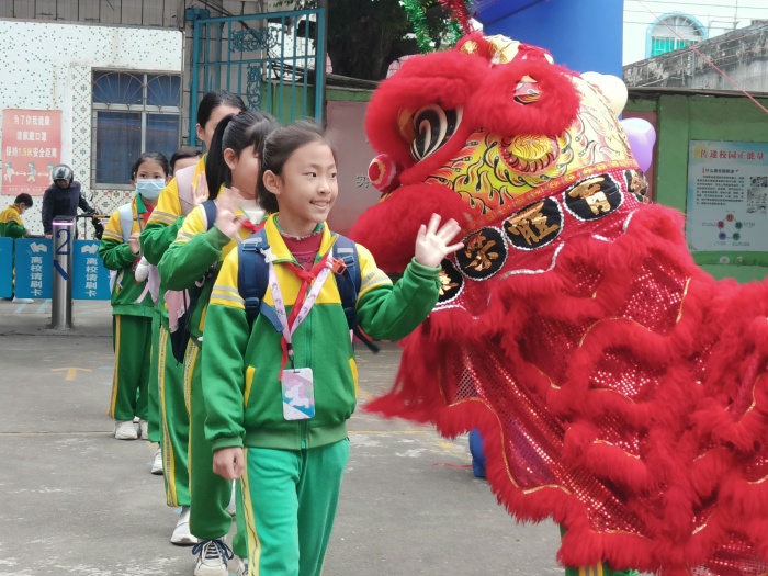 2月6日一大早,學(xué)校領(lǐng)導(dǎo)和老師們,還有禮儀隊的同學(xué)們,已經(jīng)蓄勢待發(fā)。早早來到校門口和教學(xué)樓設(shè)置的指引崗位,等待同學(xué)們的到來。學(xué)校的“醒獅隊”的隊員們也做好了準(zhǔn)備,他們將會用傳統(tǒng)的醒獅表演慶祝開學(xué)。