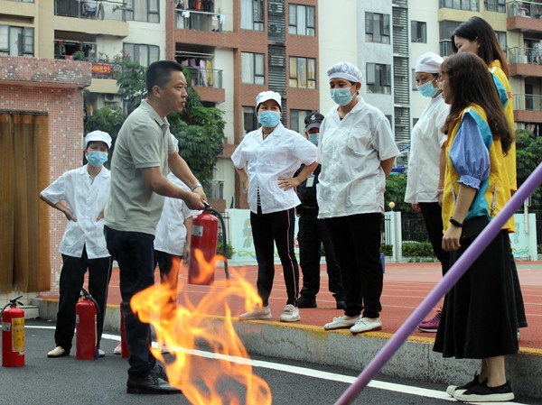 演練結(jié)束后,黃強(qiáng)助理為學(xué)校重點(diǎn)崗位人員、新入職教職工進(jìn)行滅火器、室內(nèi)消防栓操作培訓(xùn)。黃助理現(xiàn)場(chǎng)講解消防器材的構(gòu)造、使用方法和注意事項(xiàng),并現(xiàn)場(chǎng)示范滅火器實(shí)操知識(shí)技能,教職人員現(xiàn)場(chǎng)模仿演練,動(dòng)手操作、親身體驗(yàn),在遇到火災(zāi)時(shí)能夠正確使用消防器材。