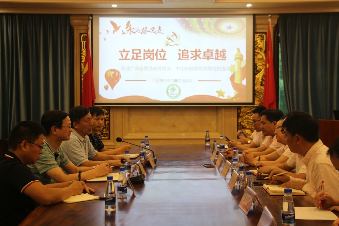 10月29日下午,廣東省民辦教育協(xié)會(huì)會(huì)長趙康、協(xié)會(huì)辦公室副主任朱祖勝,中山市教體局調(diào)研員徐全勝、基礎(chǔ)教育科科長閆玉宏蒞臨紀(jì)中三鑫雙語學(xué)校開展民辦學(xué)校專題調(diào)研,聽取學(xué)校發(fā)展建設(shè)情況匯報(bào),座談交流有關(guān)工作,學(xué)校黨委書記譚萍、校長黃建軍、校監(jiān)楊要武,副校長易躍軍、杜業(yè)富等學(xué)校管理人員參加了調(diào)研座談會(huì),會(huì)議由校辦副主任李文婷主持。