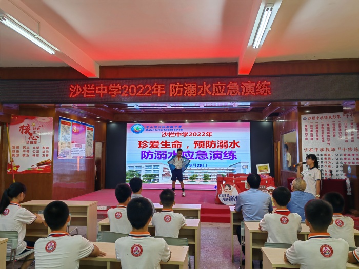 為了提高師生防溺水安全意識,強化防溺水安全教育。9月28日下午,沙欄中學(xué)開展2022年防溺水應(yīng)急演練活動。