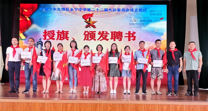 9月8日下午,為進(jìn)一步加強(qiáng)對學(xué)校少先隊工作的領(lǐng)導(dǎo),永寧中學(xué)團(tuán)委按照“黨建帶團(tuán)建,團(tuán)建帶隊建”的工作思路,培養(yǎng)少先隊員的主人翁意識,在學(xué)校體育館隆重舉行了中國少年先鋒隊永寧中學(xué)第二十二屆大隊委員會成立暨新生、志愿者宣誓儀式。參加儀式的有陳清茂校長、陳華梁副校長、楊青華副校長等校領(lǐng)導(dǎo)和初一年級全體師生。