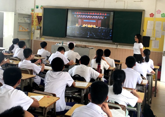 9月10日下午,永寧中學(xué)還組織全體師生在各班教室觀看“小欖鎮(zhèn)2020年教師節(jié)慶祝大會”線上直播現(xiàn)況。師生們對受表彰的教師都表示深深的敬意!