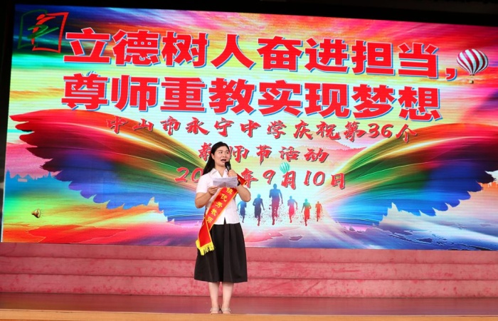 9月10日上午,為深入貫徹落實習(xí)近平總書記“讓教師真正成為最受社會尊重和令人羨慕的職業(yè),在全社會營造尊師重教的良好風(fēng)尚”的重要講話精神,在第36個教師節(jié)來臨之際,中山市永寧中學(xué)隆重舉行了以“立德樹人奮進擔(dān)當,尊師重教實現(xiàn)夢想”為主題的慶祝活動。