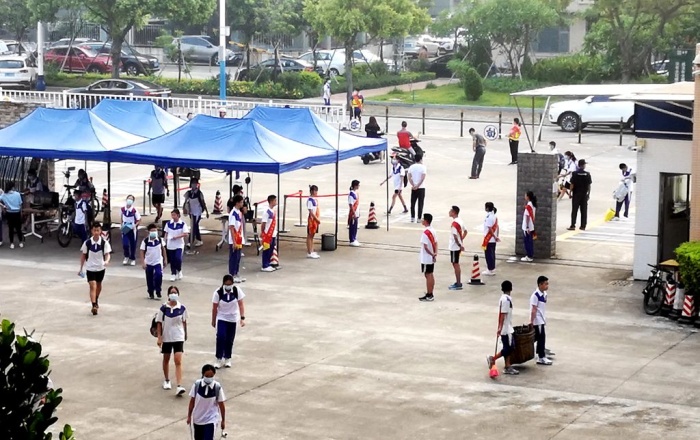 接著,陳校長緊扣國家教育方針、疫情防控要求和中山創(chuàng)建全國文明城市契機,強調(diào)學(xué)校師生要堅持疫情防控常態(tài)化,堅持高標準開展教育教學(xué)活動,高標準落實“創(chuàng)文”的教育活動和宣傳工作,圍繞著“勞動”、“健康”、“文明”和“愛國”四個關(guān)鍵詞,表達了對永中師生的殷切希望: